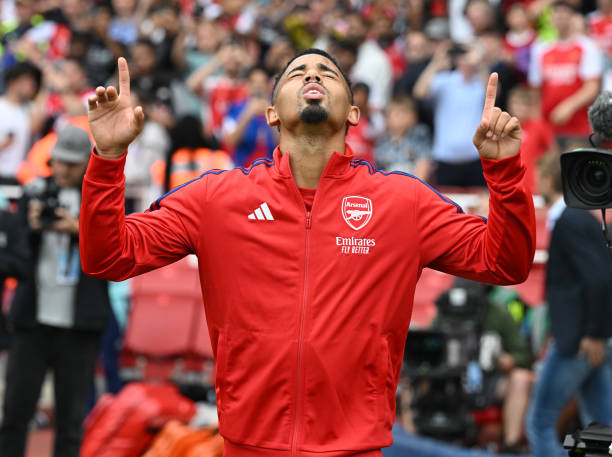 LONDON, ENGLAND – AUGUST 07: Gabriel Jesusof Arsenal before the pre-season friendly match between Arsenal and Bayer 04 Leverkusen at Emirates Stadium on August 07, 2024 in London, England. (Photo by Stuart MacFarlane/Arsenal FC via Getty Images)