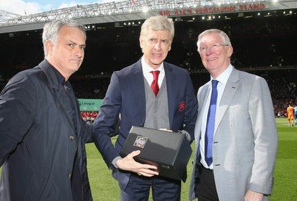 Arsene Wenger was surprised to see Sir Alex Ferguson alongside Jose Mourinho to come towards him presenting to him a gift which has made him happy despite the fact that he lost a match today against his arch rival and had this to say;