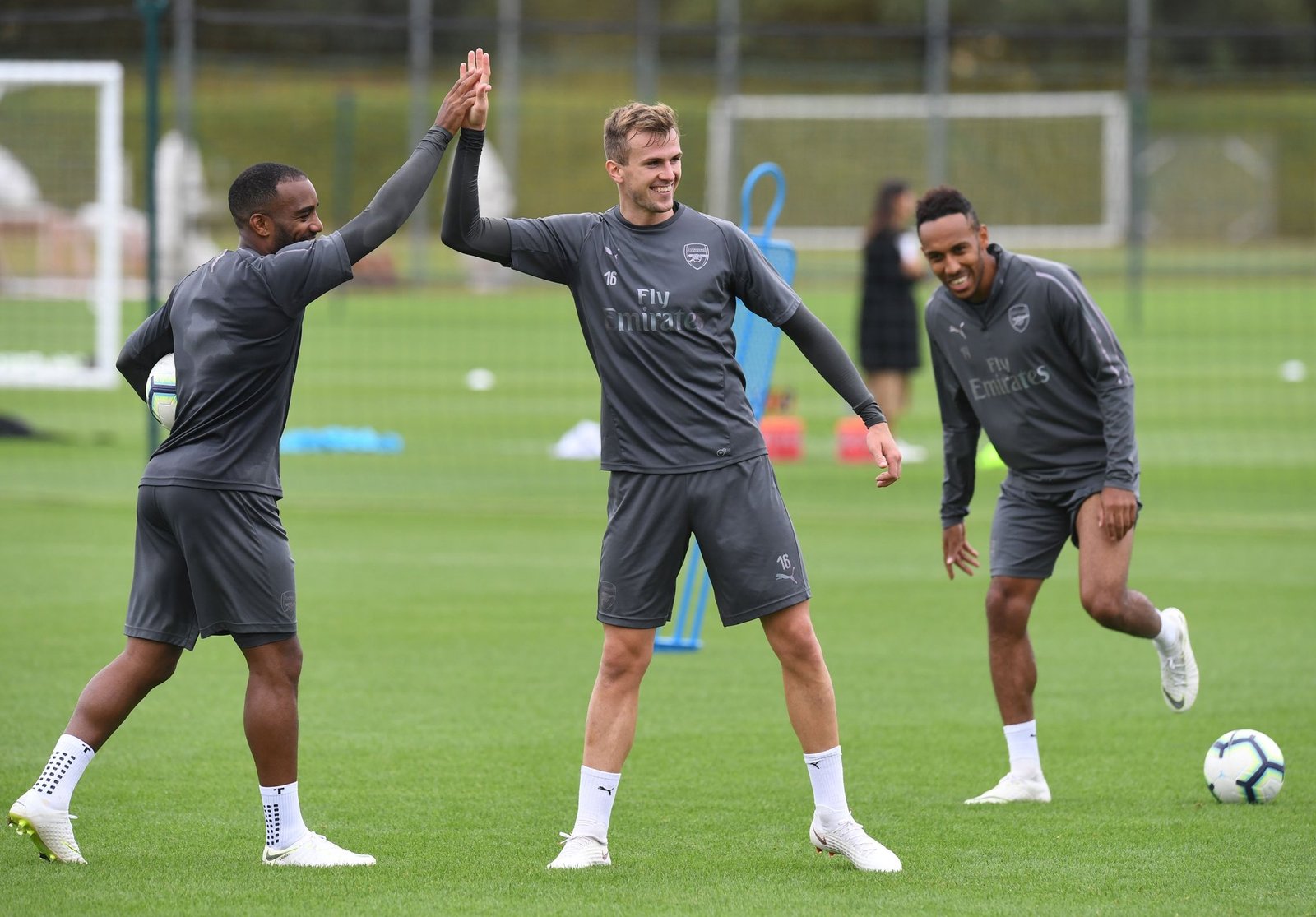 - Lacazette, Holding and Aubameyang in Arsenal training