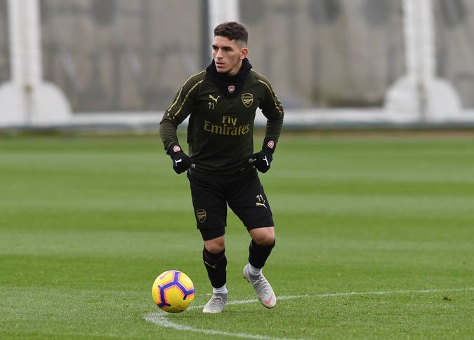 ST ALBANS, ENGLAND – OCTOBER 27: Lucas Torreira of Arsenal during the Arsenal Training Session at London Colney on October 27, 2018 in St Albans, England. (Photo by David Price/Arsenal FC via Getty Images)