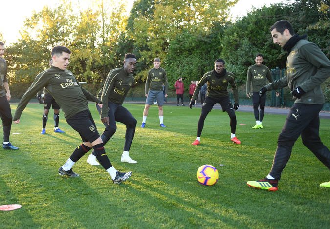 - ST ALBANS, ENGLAND – NOVEMBER 02: of Arsenal during a training session at London Colney on November 2, 2018 in St Albans, England. (Photo by Stuart MacFarlane/Arsenal FC via Getty Images)