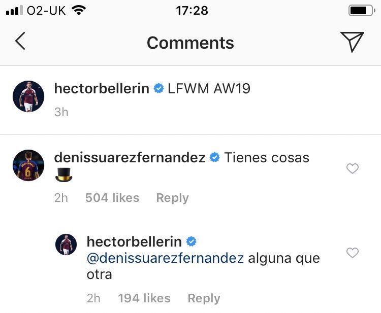 Well it started with Hector Bellerin posting a picture of himself in his usual outfits in an event and Barcelona star Denis Suarez commented on that post saying; “Tienes cosas” which is “what things you have” in English.