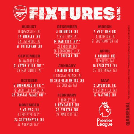 Arsenal fixture calendar ( Photo via Arsenal.com )