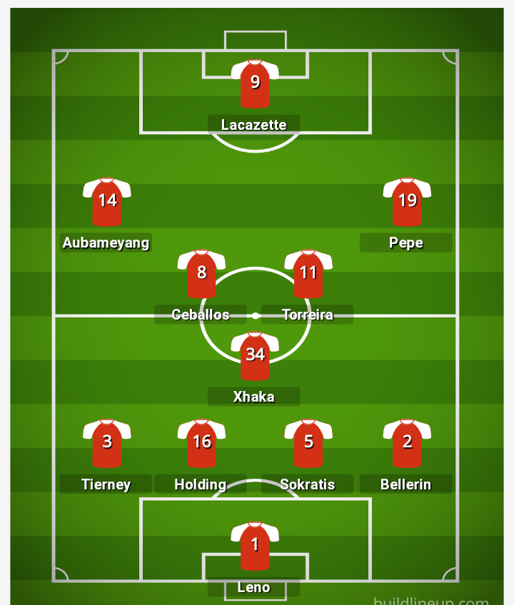 TEXT LINEUP: Leno, Bellerin, Holding, Sokratis, Tierney, Xhaka, Torreira, Ceballos, Aubameyang, Lacazette, Pepe