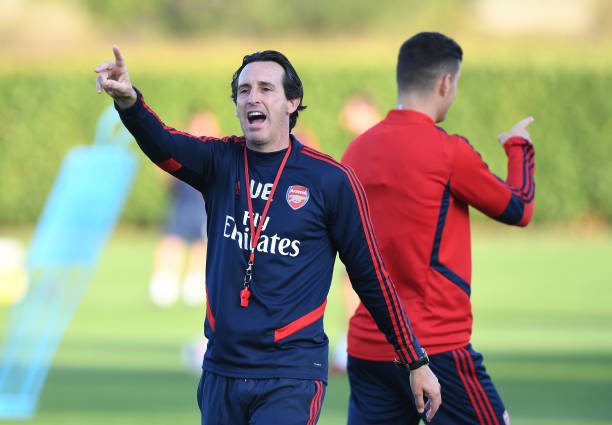 ST ALBANS, ENGLAND - SEPTEMBER 21: Arsenal Head Coach Unai Emery during a training session at London Colney on September 21, 2019 in St Albans, England. (Photo by Stuart MacFarlane/Arsenal FC via Getty Images)