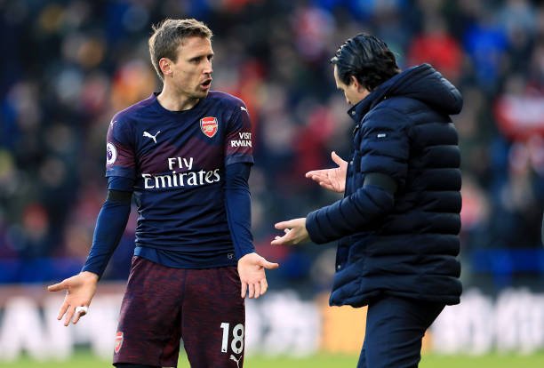 Arsenal's Nacho Monreal (left) and Arsenal manager Unai Emery (Photo by Mike Egerton/PA Images via Getty Images)