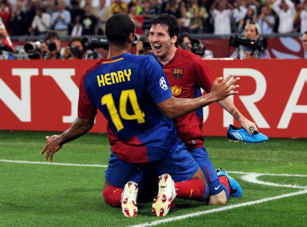 ( Thierry Henry and Lionel Messi celebrating / Photo via Getty )