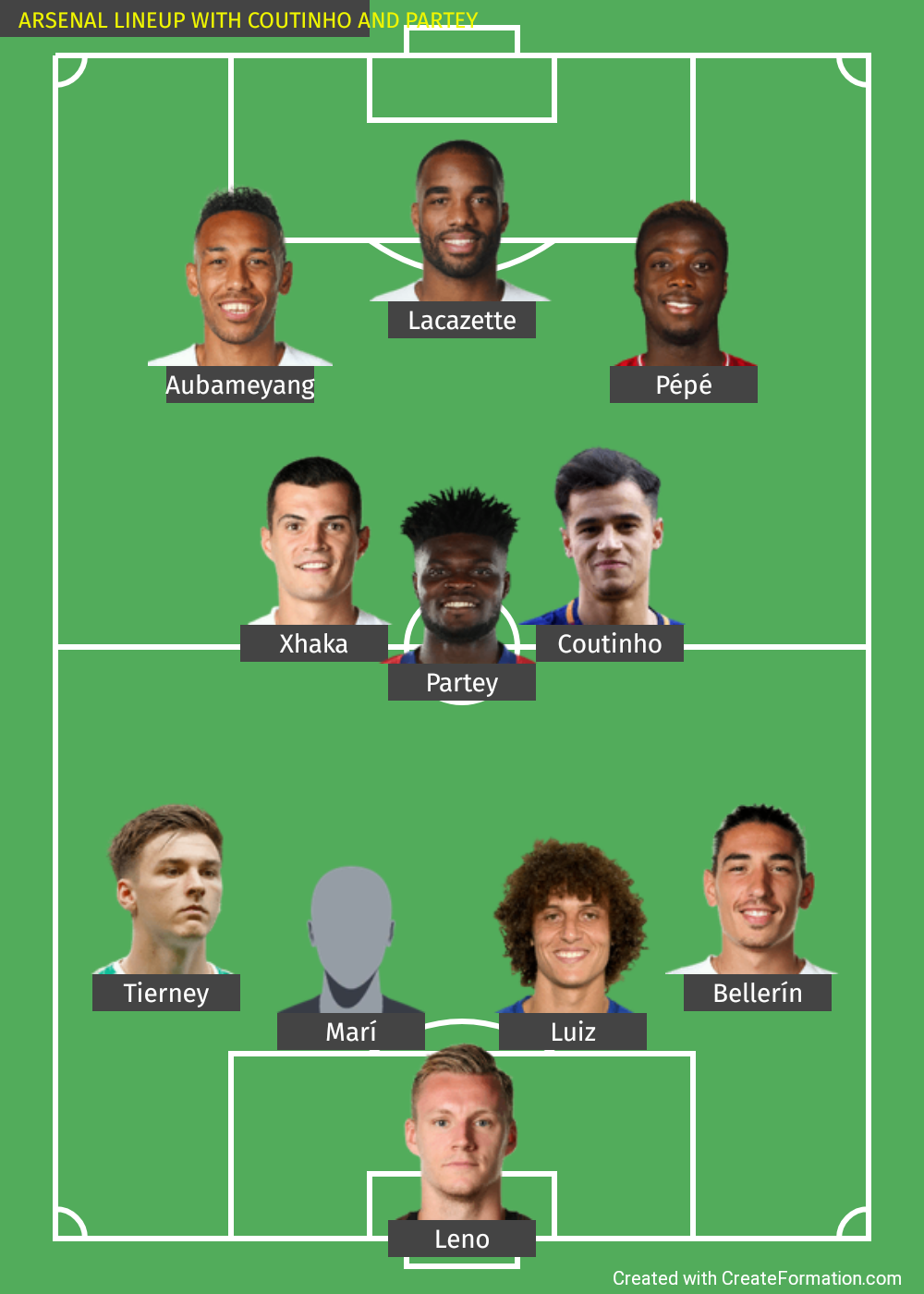 Coutinho and Partey would be suitable in a three-man midfield since one is a good defensive midfielder while the other is more attack minded and would appreciate the freedom to go forward since Xhaka and the Ghananian international would be providing cover.