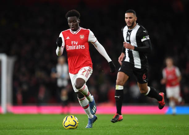 LONDON, ENGLAND – FEBRUARY 16: Bukayo Saka of Arsenal during the Premier League match between Arsenal FC and Newcastle United at Emirates Stadium on February 16, 2020 in London, United Kingdom. (Photo by David Price/Arsenal FC via Getty Images)