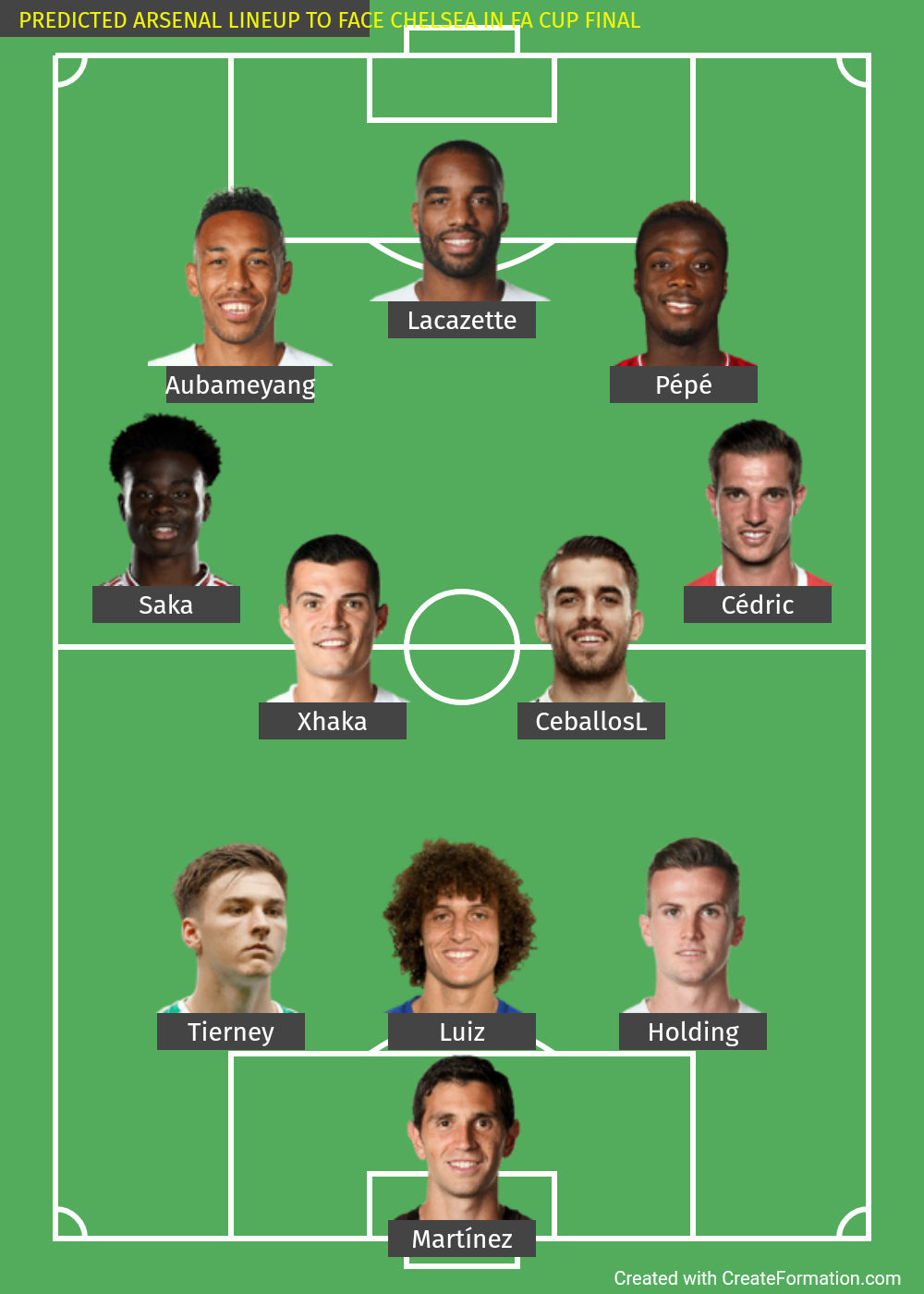 PREDICTED ARSENAL LINEUP TO FACE CHELSEA IN THE FINAL