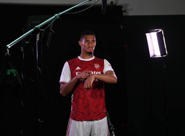 ST ALBANS, ENGLAND – SEPTEMBER 09: William Saliba of Arsenal during the Arsenal Media Photocall at London Colney on September 09, 2020 in St Albans, England. (Photo by David Price/Arsenal FC via Getty Images)