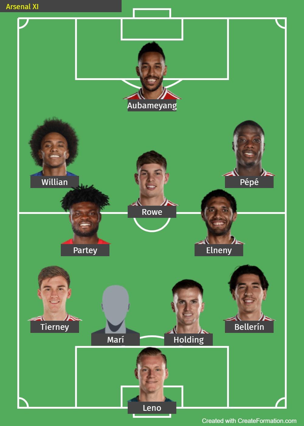 The major rotations are expected to be in the frontline with Aubameyang returning to the lineup after being left out of the Spurs game because of a discipline case. Willian and Pepe are also expected to start.