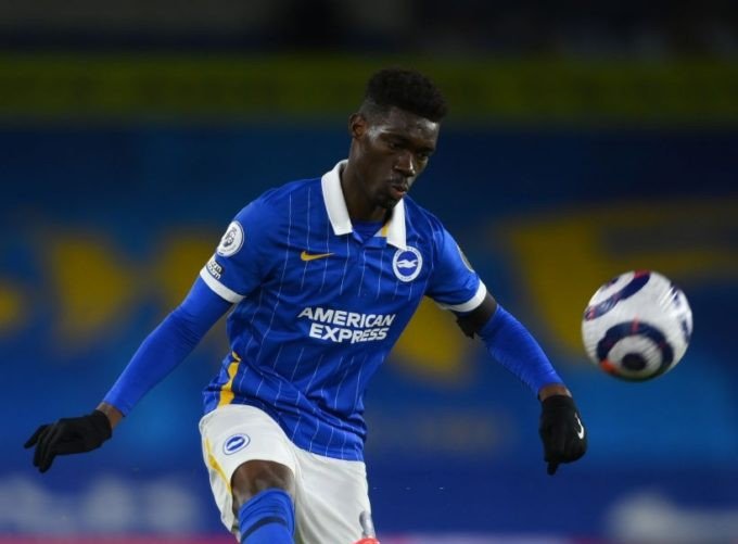 BRIGHTON, ENGLAND - APRIL 12: Yves Bissouma of Brighton & Hove Albion in action during the Premier League match between Brighton & Hove Albion and Everton at American Express Community Stadium on April 12, 2021 in Brighton, England. Sporting stadiums around the UK remain under strict restrictions due to the Coronavirus Pandemic as Government social distancing laws prohibit fans inside venues resulting in games being played behind closed doors. (Photo by Mike Hewitt/Getty Images