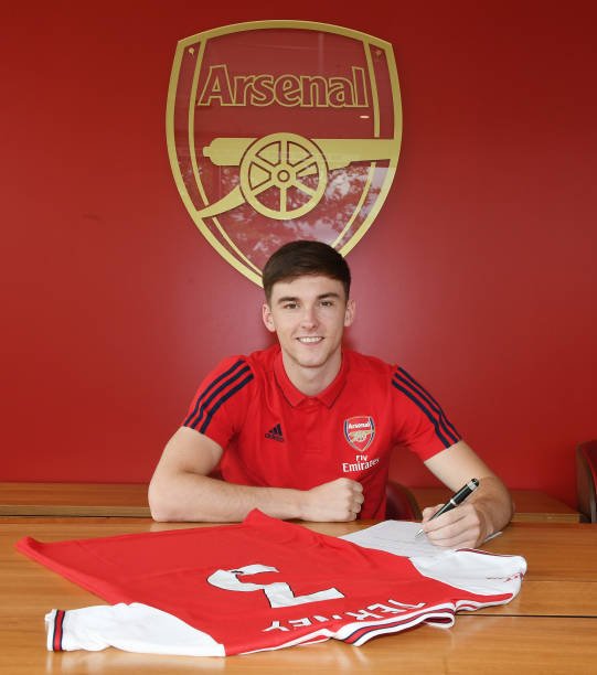Tierney signing for Arsenal back in 2019. (Photo by Stuart MacFarlane/Arsenal FC via Getty Images)