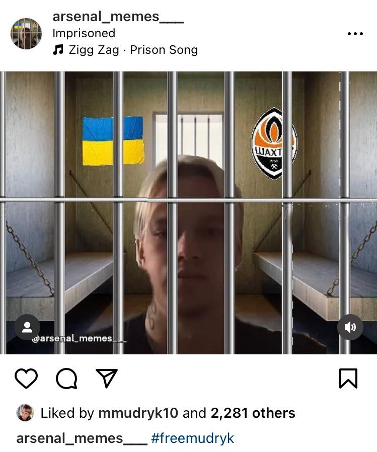 Arsenal have got two of their bids rejected by Shakhtar Donetsk so far but Mykhaylo Mudryk has shown how he wants to join the Emirates by liking an Instagram post which requests for his club to free him in the caption with a photoshopped photo of him in the prison.