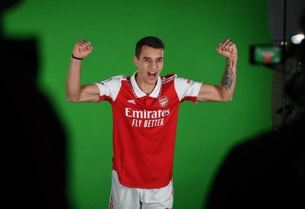 ST ALBANS, ENGLAND - JANUARY 23: Arsenal unveil new signing Jakub Kiwior at London Colney on January 23, 2023 in St Albans, England. (Photo by Stuart MacFarlane/Arsenal FC via Getty Images)