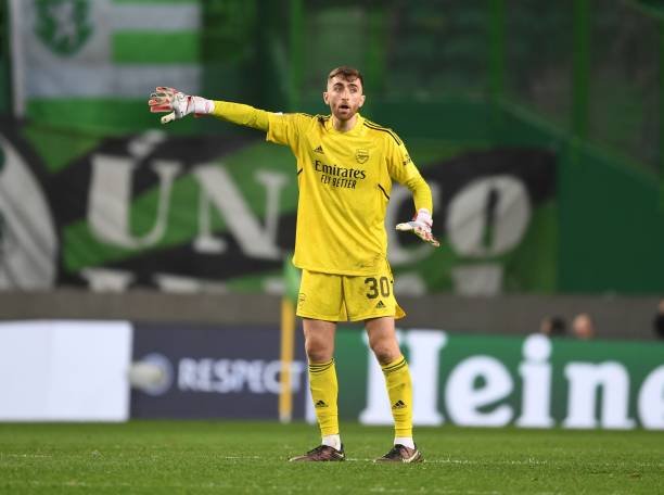 LISBON, PORTUGAL – MARCH 09: Matt Turner of Arsenal during the UEFA Europa League round of 16 leg one match between Sporting CP and Arsenal FC at Estadio Jose Alvalade on March 09, 2023 in Lisbon, Portugal. (Photo by Stuart MacFarlane/Arsenal FC via Getty Images)