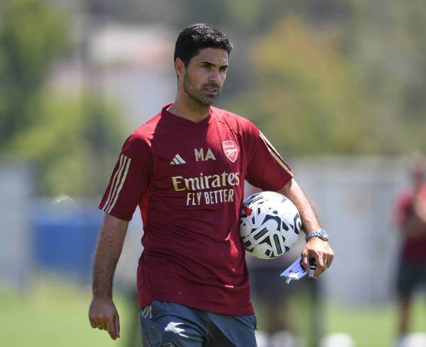 THOUSANDS OAKS, CALIFORNIA - JULY 24: Arsenal manager Mikel Arteta during a training session at the LA Rams Training Facility on July 24, 2023 in Thousands Oaks, California. (Photo by Stuart MacFarlane/Arsenal FC via Getty Images)