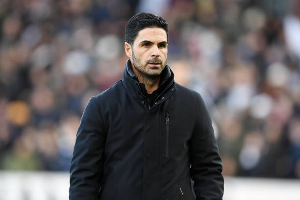 LONDON, ENGLAND - DECEMBER 31: Mikel Arteta, Manager of Arsenal, looks on prior to the Premier League match between Fulham FC and Arsenal FC at Craven Cottage on December 31, 2023 in London, England. (Photo by Stuart MacFarlane/Arsenal FC via Getty Images)