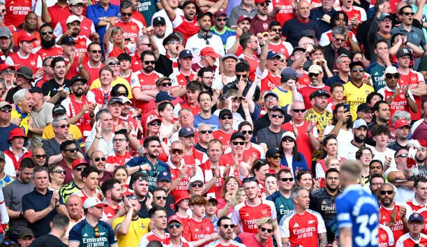 LONDON, ENGLAND - MAY 19: Arsenal fans show their support during the Premier League match between Arsenal FC and Everton FC at Emirates Stadium on May 19, 2024 in London, England. (Photo by Stuart MacFarlane/Arsenal FC via Getty Images)