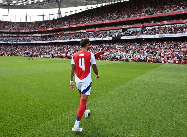 LONDON, ENGLAND – AUGUST 11: Ben Whiteof Arsenal during the Emirates Cup match between Arsenal and Olympique Lyonnais at Emirates Stadium on August 11, 2024 in London, England. (Photo by Stuart MacFarlane/Arsenal FC via Getty Images)