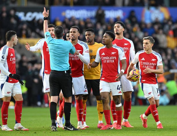 Young midfielder Myles Lewis-Skelly faced his first red card of the season in a home match against Wolves on December 14, 2024. In the 43rd minute, he was sent off for a high tackle on Matt Doherty. Initially, VAR upheld the on-field decision, but upon appeal, the Football Association rescinded the red card, acknowledging it as a controversial call. Despite playing with ten men for the majority of the match, Arsenal managed a 0-0 draw.