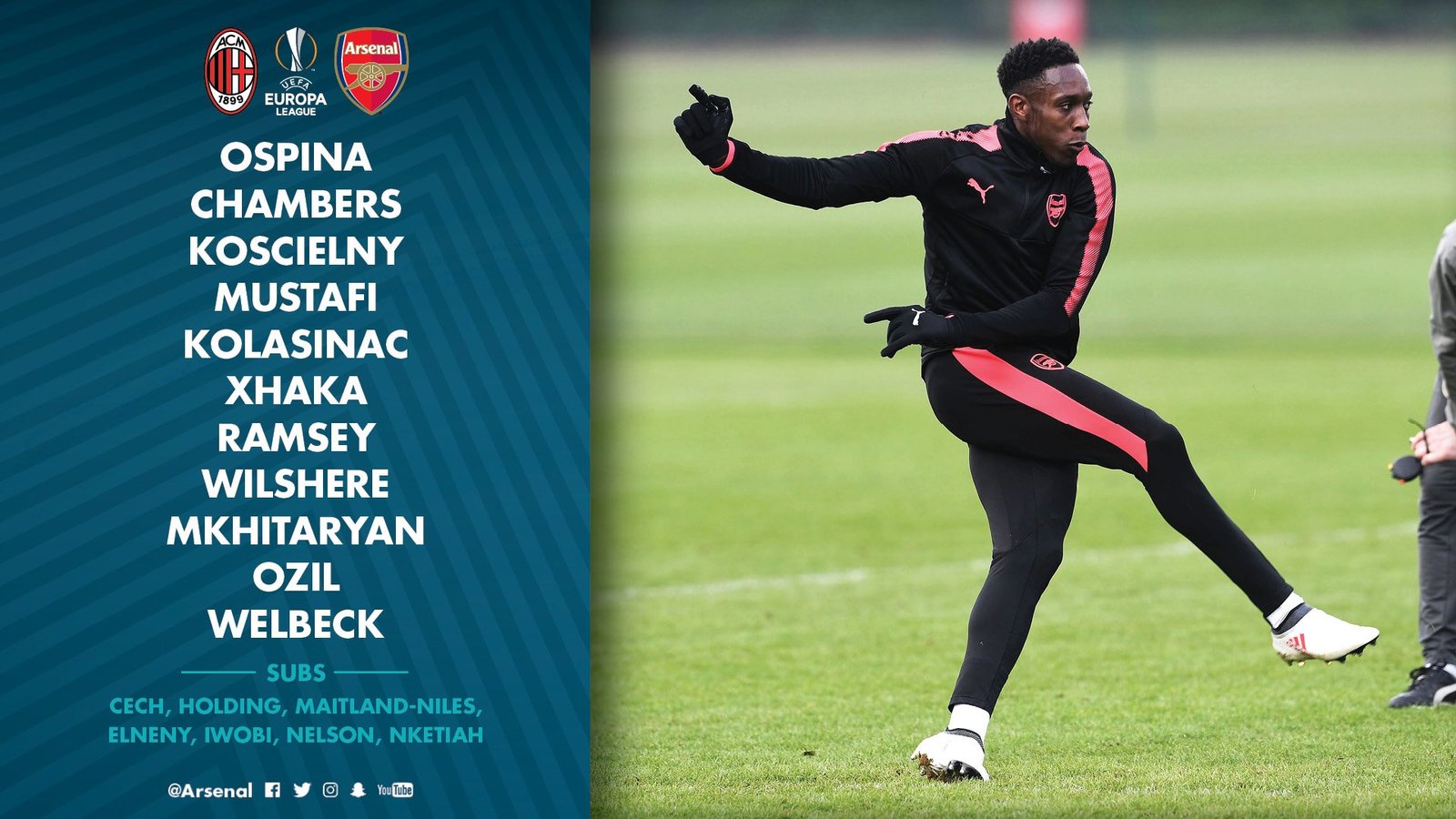 8th March 2018The gunners are facing AC Milan on Thursday and the Arsenal lineup has been revealed.