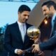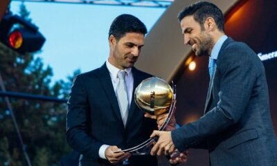 Arsenal’s Mikel Arteta receives a spectacular award for his club’s success